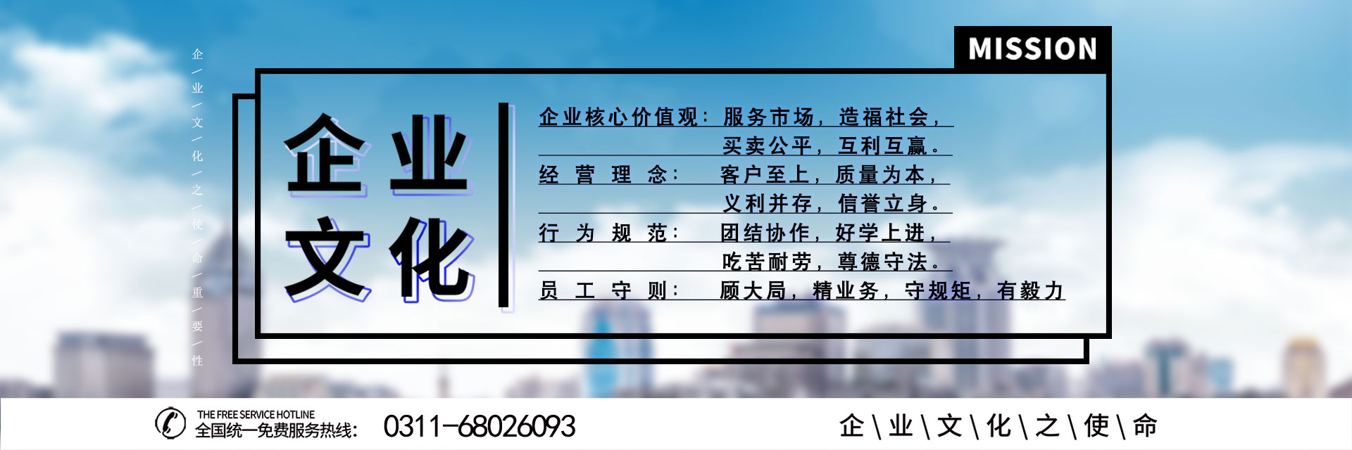 核心價(jià)值觀:服務(wù)市場,造福社會,買賣公平,互利互贏。